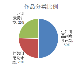 作品征集历时三个月,截止到12月15日,大赛共收集1616份作品。从参赛作品类别来看,生活用品创意设计类806份,占50%,包装创意设计类411份,占25%,工艺创意设计类399份,占25%。按参赛者类别来看,58所专业院校共1316份作品,占81%;37家设计企业共238份作品,占15%;个人参赛者共62份作品,占4%。