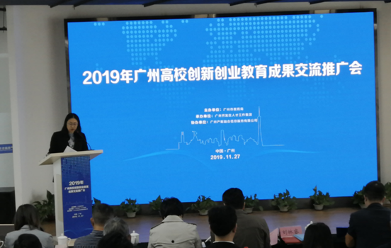 2019年11月27日上午,由广州市教育局主办,广州开发区人才工作集团承办,广州高校创新创业教育成果交流推广会在广州市产教融合示范区举办。市教育局副局长谷忠鹏,黄埔区人社局局长周锦高,市教育局高等教育处处长刘林睿,市发改委社会处调研员高持白,市工业和信息化局处长曾德峰,市科技局产学研处长吕晓峰,黄埔区发改局总经济师秦东风,开发区就业中心主任王佐宁等14位市、区有关部门领导、中山大学管理学院任荣伟博士生导师,华南师范大学徐向龙副院长,华南理工大学建筑学学院王静教授等60位高校代表、广州大画传媒市场总监肖寅爽,广东云图动漫设计股份有限公司商务总监助理陈国柱等29位企业代表、广东省商业美术设计行业协会执行会长高晓峰行业协会唯一代表出席本次会议。