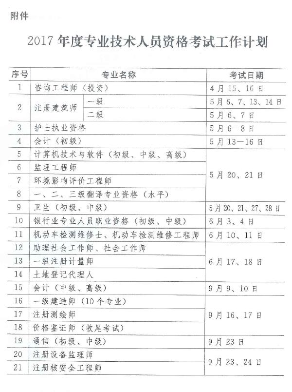 附件:我省2017年度专业技术人员资格考试工作计划