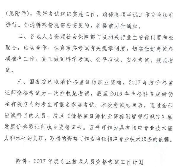 于2017年度专业技术人员资格考试计划及有关问题的通知