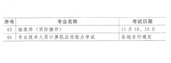 43 | 专业技术人员计算机应用能力考试 | 各地自行确定 | ||