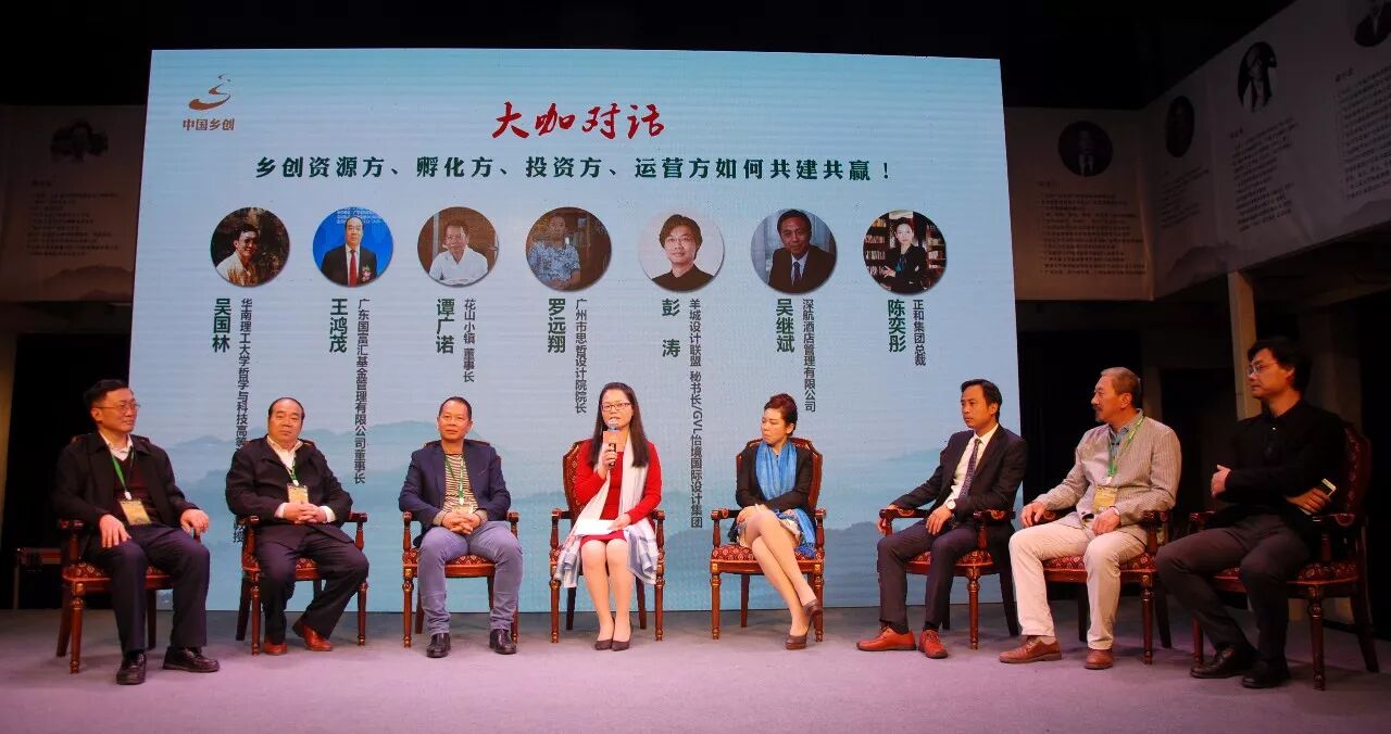 主题演讲之后,华南理工大学哲学与科技高等研究所所长/教授吴国林、广东国福汇基金管理有限公司董事长王鸿茂、广州花山小镇董事长谭广诺、广州市思哲设计院院长罗远翔、GVL怡境国际设计集团总裁彭涛、深航酒店管理有限公司拓展总监吴继斌、正和集团总裁陈奕彤作为乡创资源方、孵化方、投资方、运营方代表,就“乡创四方”如何实现共建共赢与在场嘉宾展开长达一个小时的深入探讨与交流。