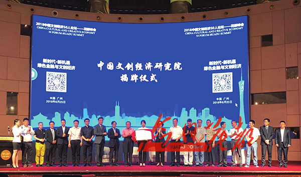 会上,中共中央宣传部原常务副部长龚心瀚,广州市文化体制改革与文化产业发展办公室主任皮健,新华社原亚太分社社长、亚太日报社社长俱孟军为世界创意之父John Howkins、广州市社会科学院副院长尹涛、广州市融资担保中心董事长黄强等40人颁发了广州市文化产业专家库及广州文化创意企业板评审委受聘书,并为以广州市文化产业专家库为基础发起设立的中国文创经济研究院揭牌,中国民主建国会广东省委员会相关领导及花都区委区政府参与见证。此外,广州市文化金融服务中心与广东省商业美术设计行业协会还举行了广州市文创产品成果转换交易平台签约暨启动仪式,以及花都区文化金融企业路演及市文化金融信贷产品推荐。