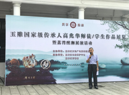 9月3日,协会执行会长高晓峰应邀出席由荔湾区文化广电新闻出版局举办的玉雕国家级传人高兆华师徒/学生作品展览。