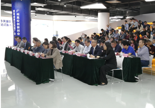 2019年11月27日上午,由广州市教育局主办,广州开发区人才工作集团承办,广州高校创新创业教育成果交流推广会在广州市产教融合示范区举办。市教育局副局长谷忠鹏,黄埔区人社局局长周锦高,市教育局高等教育处处长刘林睿,市发改委社会处调研员高持白,市工业和信息化局处长曾德峰,市科技局产学研处长吕晓峰,黄埔区发改局总经济师秦东风,开发区就业中心主任王佐宁等14位市、区有关部门领导、中山大学管理学院任荣伟博士生导师,华南师范大学徐向龙副院长,华南理工大学建筑学学院王静教授等60位高校代表、广州大画传媒市场总监肖寅爽,广东云图动漫设计股份有限公司商务总监助理陈国柱等29位企业代表、广东省商业美术设计行业协会执行会长高晓峰行业协会唯一代表出席本次会议。
