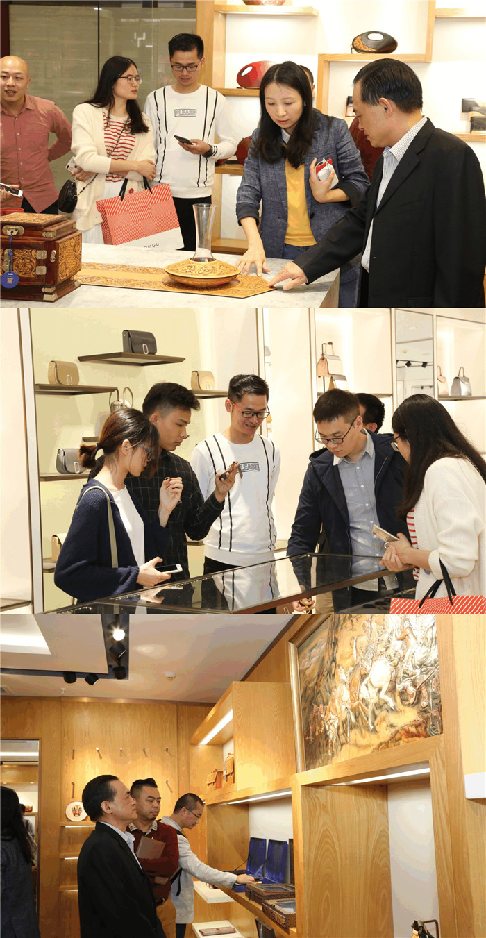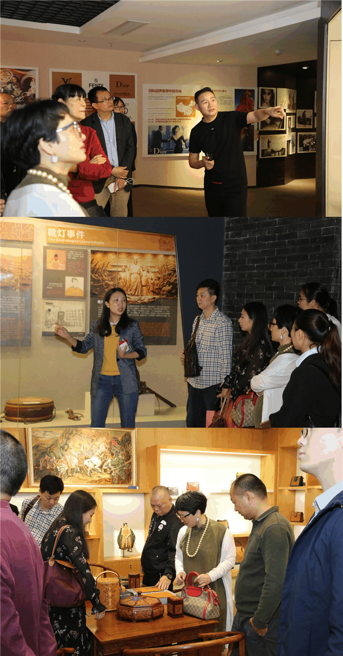 会前,红谷皮具公司团购中心总监赵伟女士带领与会嘉宾参观红谷产品展厅和华夏箱包文化历史博物馆。据介绍,博物馆共设立华夏箱包发展历史、束河皮匠600年传奇、包容天下及品牌展望四个展厅,呈现了中华民族各种箱包形态,及其深厚的文化底蕴与传统美学。