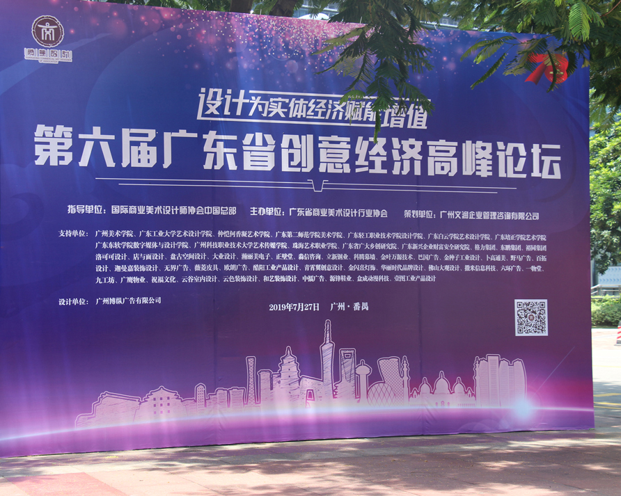 7月27日下午,由广东省商业美术设计行业协会主办,广州文润企业管理咨询有限公司策划的第六届广东省创意经济高峰论坛在广州番禺成功举行,原广东省委宣传部副部长李子彪、财政部驻广东省财政监察专员办事处杨宪华专员、广东省人才服务局原调研员朱志峰、广东省商业美术设计行业协会执行会长高晓峰、省商美协会策划顾问郑丹晖、广东白云学院艺术设计学院院长陈华钢、广东东软学院数字媒体与设计学院院长黄迅、广州科技职业技术大学艺术传媒学院院长尚华、广州美术学院工业设计学院副院长王涛、广州美术学院视觉艺术设计学院副教授杜羿纬、盘古设计董事长杨音、店与面创意设计创始人邱启平、设计同行、会员单位代表200多人出席活动。